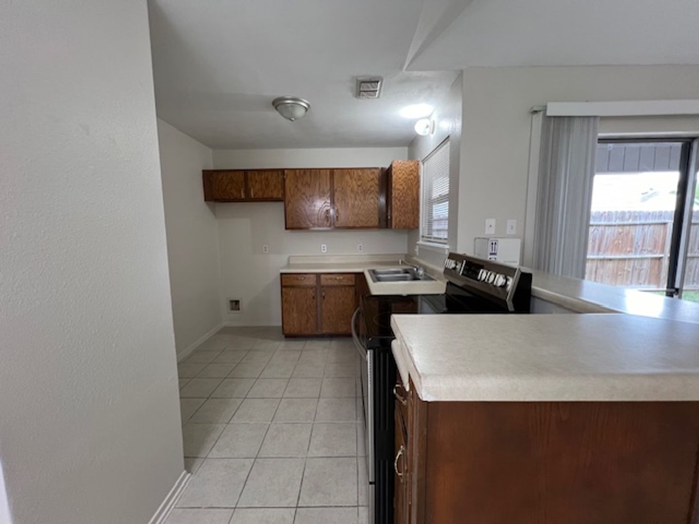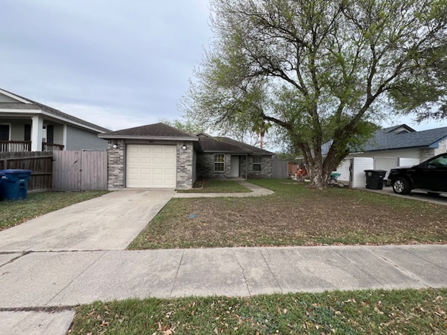 Charming grey brick home conveniently located just off TX-286 and Saratoga! This home features an open floor plan with ceramic tile flooring throughout, ceiling fans, and vaulted ceilings in the living room for a spacious feel. The kitchen includes an above-sink window, breakfast bar, pantry, and a stainless steel glass-top stove. The master bedroom offers a walk-in closet and a separate sink and vanity area for added convenience. Enjoy the fenced backyard with a covered patio, perfect for relaxing or entertaining. One car garage includes built-in cabinets and washer/dryer connections.