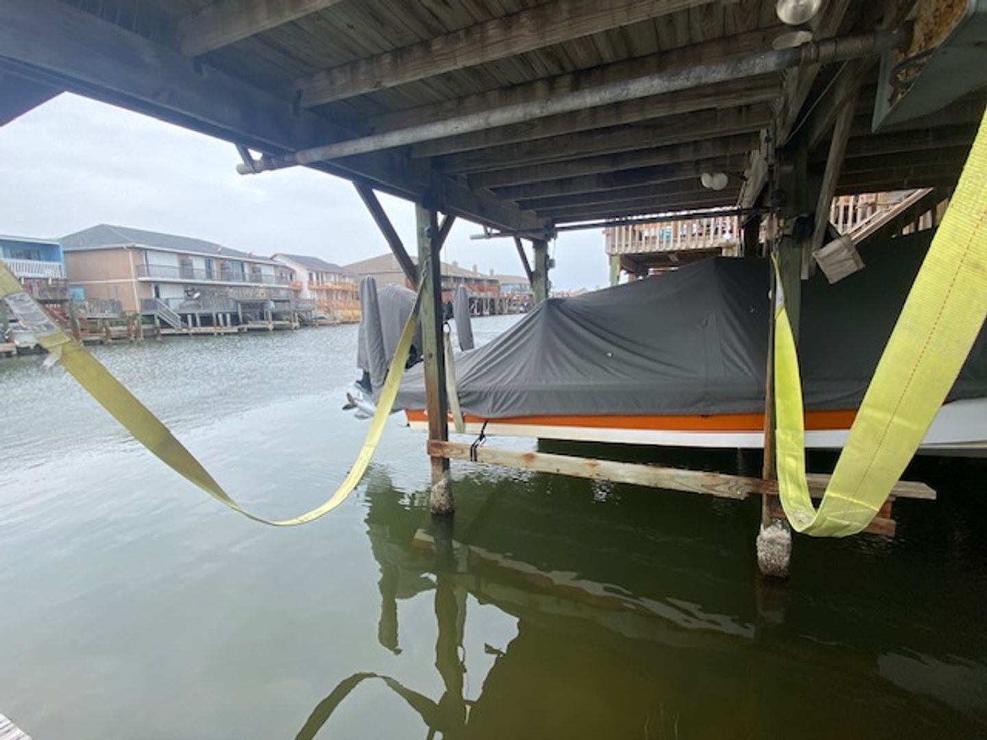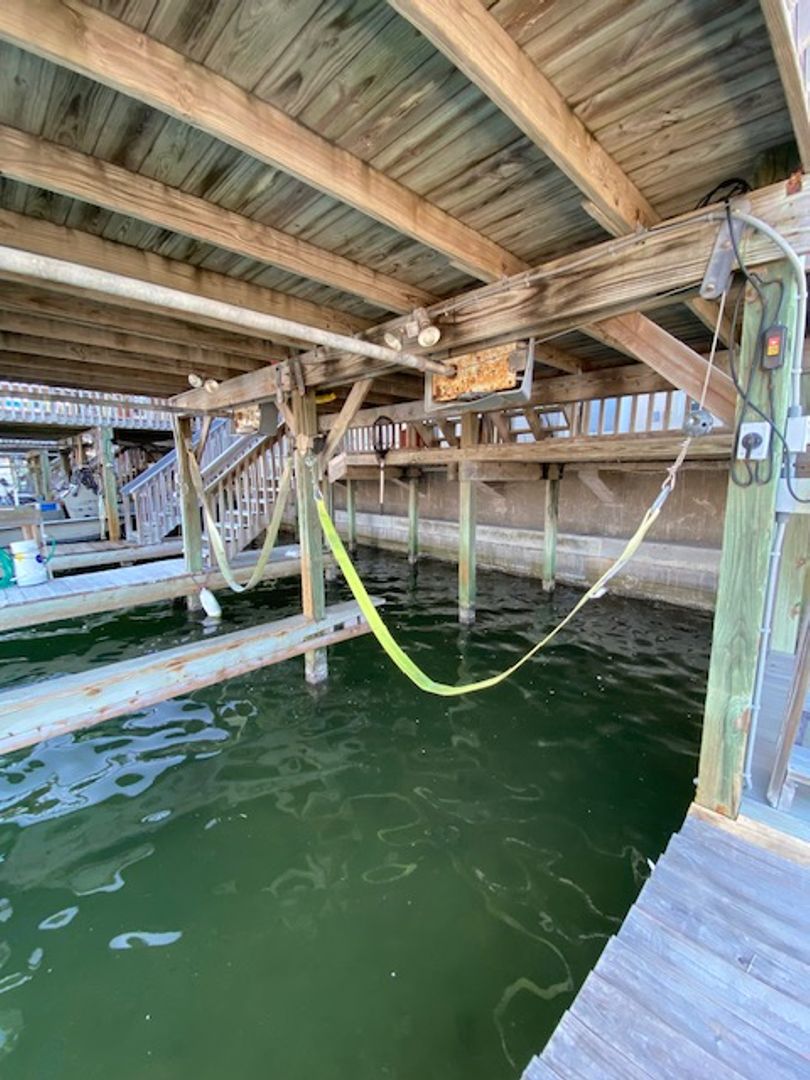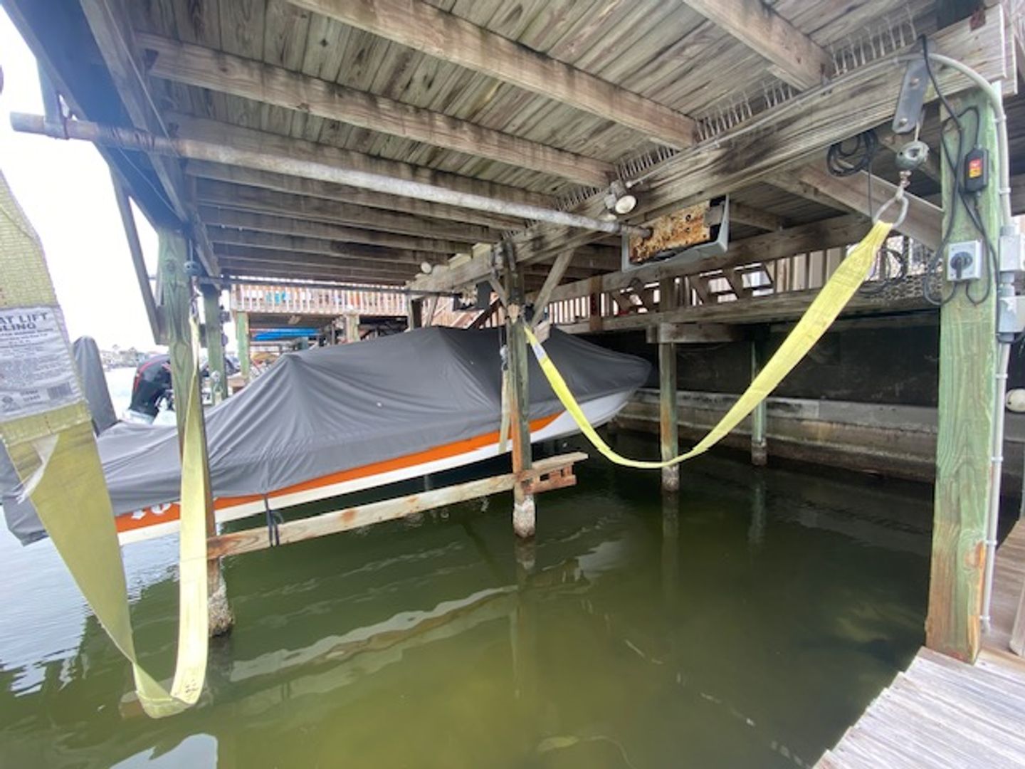 This beautiful end-unit townhome is ideally located across from Billish Park, offering easy access to boat ramps and a scenic walking/jogging path. Just a short drive away from the island's popular beaches and NAS-CC, this property combines convenience and coastal charm. With two stories of spacious living, this home features a covered boatlift perfect for water enthusiasts, and generously-sized bedrooms, each with walk-in closets and tray ceilings. The open-concept main level boasts wood-like ceramic tile throughout the common areas, crown molding, and tropical ceiling fans, creating a welcoming atmosphere. The living area features a water view and stacked stone fireplace for added warmth and style. Kitchen comes fully equipped with a washer, dryer and refrigerator and a new glass-top stove, dishwasher and built-in microwave, . For added convenience, the downstairs master suite features bath with dual sinks, a jetted tub and a large walk-in closet with custom built-in shelving. One car garage with automatic opener.