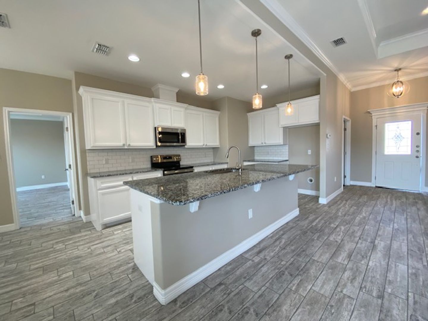 It will be love at first sight with this custom-built home, conveniently located within walking distance of Seashore Schools, boat ramp & some of the North Padre's most popular beaches. Also, just minutes away from NASCC & TAMU-CC. If the location hasn’t sold you, you will surely be wowed the moment you walk through your new front door to find soaring ceilings and superb finishes throughout. Entertaining will surely be a delight with spacious living and dining areas open to a cook's kitchen equipped with stainless steel appliances, subway-tiled back splash, ample counter & cabinet space and an oversized, functional center island with breakfast bar and sink. split-bedroom floorplan with a bonus room perfect for office, den or 4th bedroom. Home boasts plenty of upgrades, including many upscale details such as modern ceiling fans and decorative lighting, crown molding, tray ceilings, wood-like ceramic tile flooring throughout, 2-inch faux wood blinds, granite countertops, and a master bath with dual sinks, soaking tub & walk-in, floor-to-ceiling tiled shower as well as a spacious walk-in closet with built-ins and abundant wardrobe space! last but not least, property is wired with alarm system, has a two-car garage with automatic opener and there is a small, fenced yard with covered patio. You will be proud to call this property home!