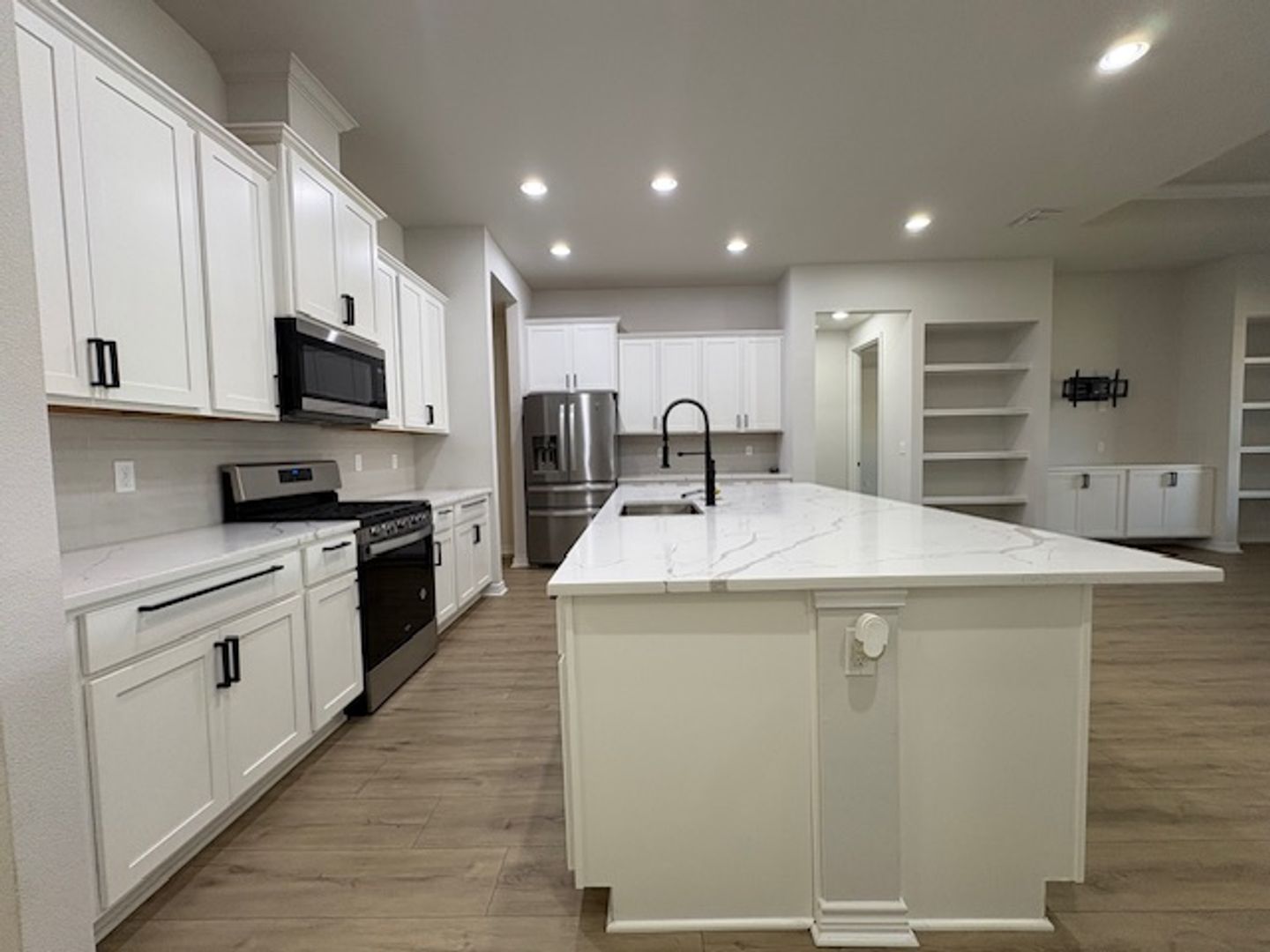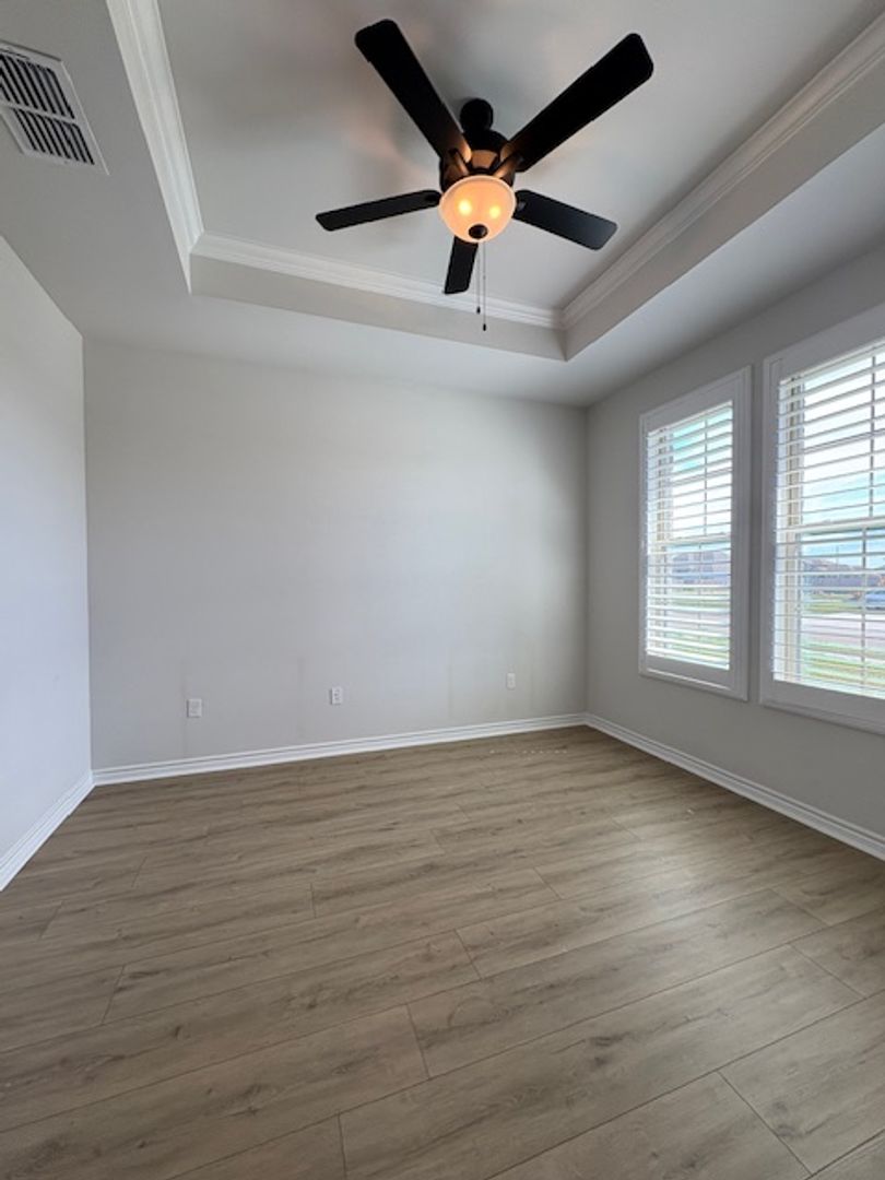 Located in a desirable neighborhood along the Oso, this spacious and well-designed home offers generous living space, abundant storage, upscale details, and an excellent location. The neighborhood provides direct access to the Oso Bay Wetlands Preserve. Just steps from your front door, you can enjoy miles of scenic walking and jogging trails, bird watching, kayaking, biking, and beautiful coastal views. The home is also just a short drive to Naval Air Station & TAMU-CC. Inside, you’ll find high ceilings and vinyl plank flooring throughout main living areas, with carpet in the guest bedrooms. The open living space features built-in shelving and cabinets and flows seamlessly into the kitchen, which includes quartz countertops, stainless steel appliances, a gas stove, built-in microwave, dishwasher, side-by-side refrigerator, a large walk-in pantry, and a massive center island with plenty of storage and prep space. The home also includes a formal dining area and a separate office, perfect for working from home or easily used as a 5th bedroom. The split-bedroom, flexible floor plan provides added privacy. Spacious primary suite features two large walk-in closets plus additional linen storage. Primary bathroom includes separate vanities, large walk-in glass shower, and oversized soaking tub. One guest bathroom offers a walk-in shower, while the second includes a tub/shower combination. Additional features include a dedicated laundry room with extra storage (washer & dryer provided for courtesy use), a bonus space off the kitchen perfect for a mudroom setup, plantation shutters, three TV mounts left for resident courtesy use, fenced backyard with a large covered patio, and a two-car garage with automatic opener and 50 amp plug, super convenient for an electric vehicle!